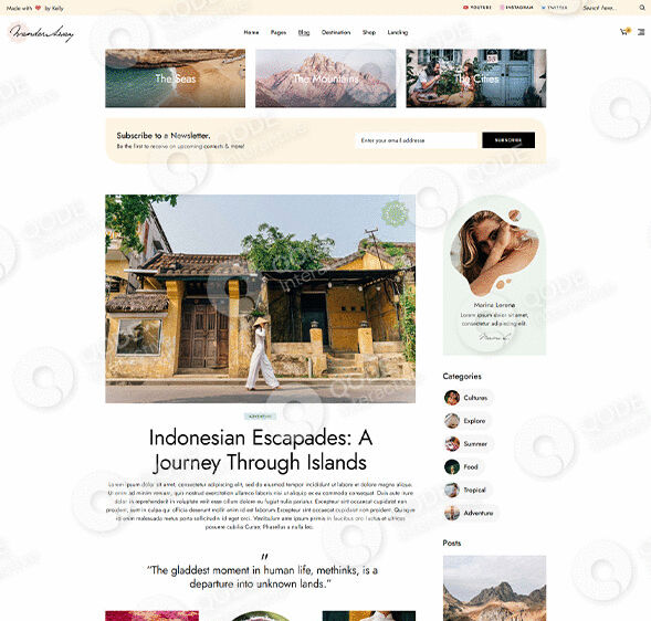 Every Travel Story’s Favorite Destination Create a website the stories from your journeys truly deserve with WanderAway, a modern travelogue & personal travel blog theme. purchase © 2024 Qode Interactive, All Rights Reserved